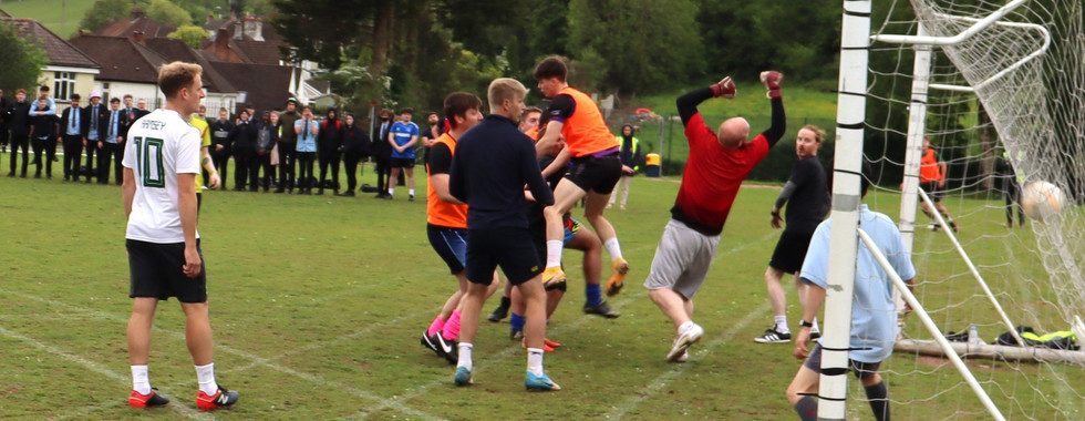 The 6th Formers went further ahead around the half way point with a goal from Alfie Thomas from a well worked corner. He rose acrobatically above Mr Adams at the front post to guide the ball into the roof of the net. The staff managed to pull a consolation goal back through Mr Doble towards the end of the game as he also scored from a set piece taken superbly by Mr Hall making it a very fair 2-1 on balance of play.